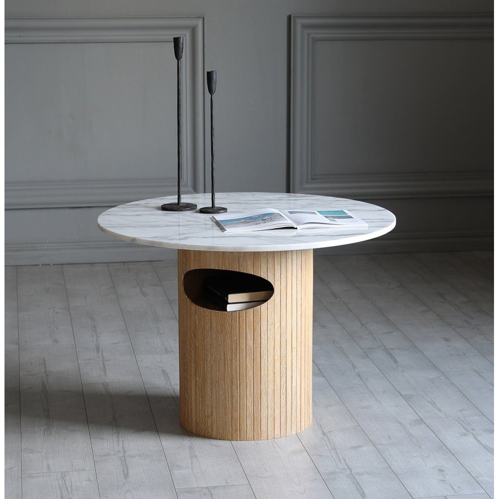 Arto runt soffbord höjd 60 cm - Whitewash / Vit marmor: