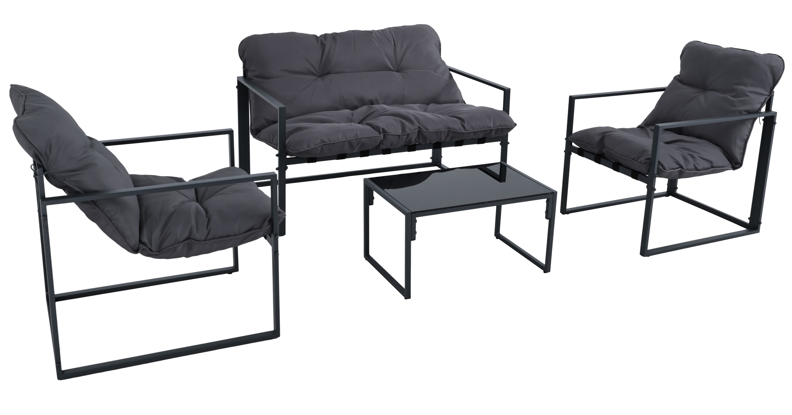 - Utegrupp; soffa + 2 st fåtöljer + soffbord Svart/grå - Kreta