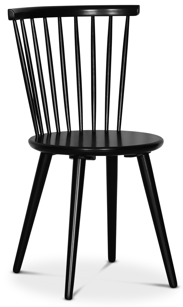 Sandhamn matgrupp Klassiskt utförande. Stilrent klaffbord med 4 st matchande Castor pinnstolar i massivt svartlackat trä.