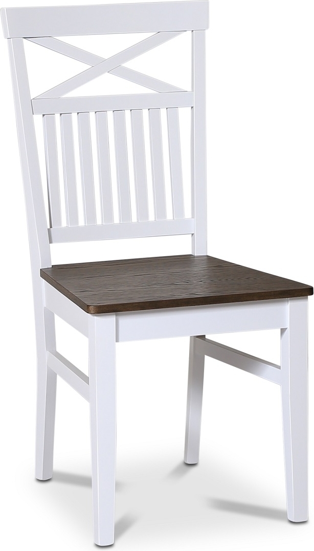 Skagen matgrupp; runt matbord Ø120 cm - Vit / brunoljad ek med 4 st Skagen stolar (Kryss i ryggen) med brunoljad eksits: