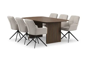 Richeto Matgrupp 240 cm med 6 Mora Snurrstolar, Naturlig finish/Mörkbeige